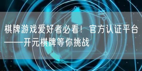 棋牌游戏爱好者必看!官方认证平台——开元棋牌等你挑战